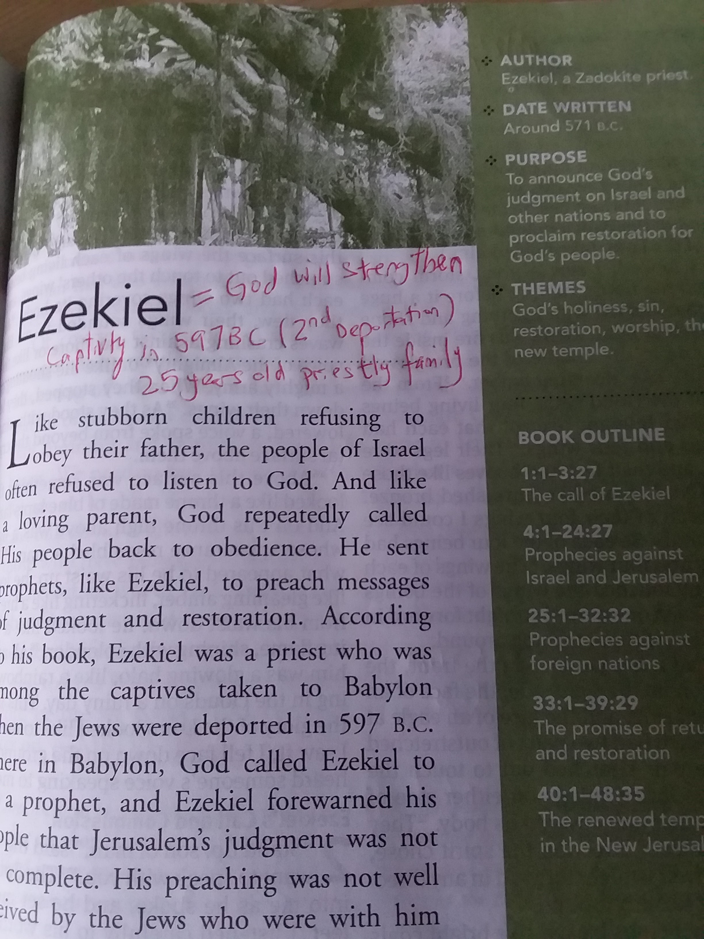 started reading on the Book of Ezekiel, one or two chapter a day. In my